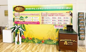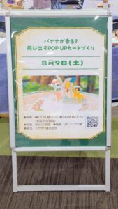 8月9日、千葉県市原市にある商業施設「ユニモちはら台」様のキッズ・ファミリー向け夏休み体験イベント「SAVE THE EARTH UNIMO PLANET QUEST」に参加しバナナペーパーのポップアップカード作りを開催しました。
