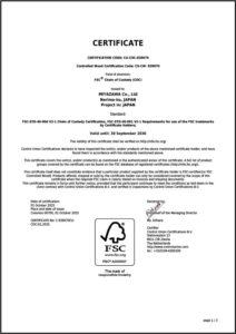 2025年10月1日(水)付で、今年もFSC®認証(FSC® C127338)の認定書が無事発行されました。