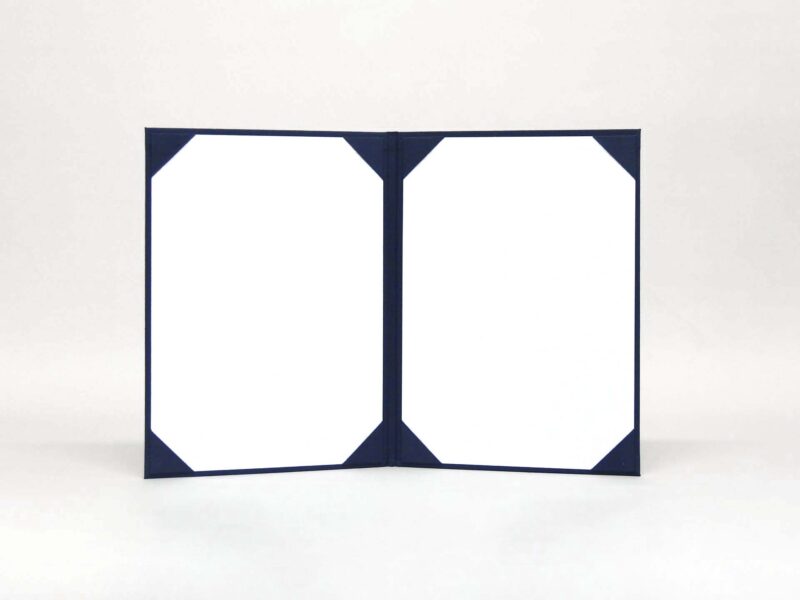 感謝状/布/紺/証書サイズA4(297×210㎜)/紹介番号2-37 感謝状を収納するホルダーを製作しました。 タイトル:PARTICIPATION CERTIFICATE(感謝状) 証書サイズ:A4(縦297×横210㎜) 証書枚数:2枚 表紙素材:布 表紙素材の色:紺 裏(見返し素材):バナナペーパー 裏(見返し素材)色:白 箔押:金 厚み有か無か:有り 重さ/g:400g 展開した際の外寸(縦×横)㎜:縦315×横460㎜ 二つ折りの際の外寸(縦×横)㎜:縦315×横225㎜ コーナー素材:布(紺) コーナー数:8