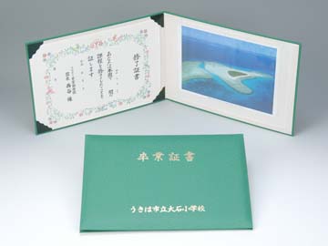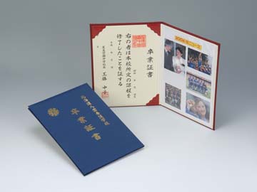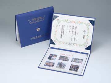ホルダーとアルバムが合体した、ミヤザワのオリジナル商品です。記念写真と証書が一緒に保管できます。